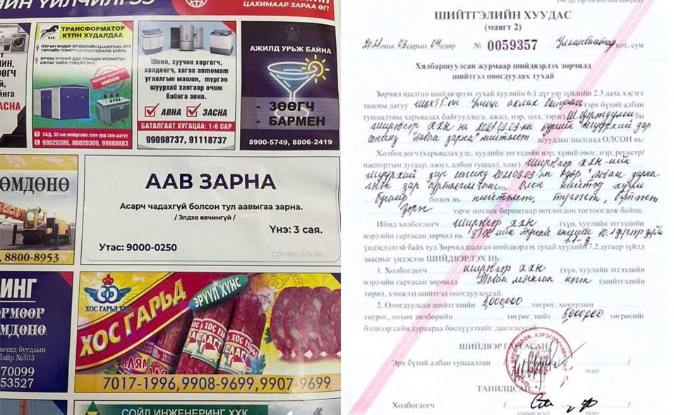Цахим сүлжээнд зар мэдээ сонин дээр “Аав зарна” “Асарч чадахгүй болсон тул аавыгаа зарна, элдэв өвчингүй” гэсэн зар нийтлэгдсэн билээ. Хууль зөрчсөн энэ үйлдлийн дагуу цагдаагийн байгууллага шалгалтын ажиллагаа явуулхад дээрхи зар нь "Кино контент"-ын сурталчилгаа хийх зорилгоор байршуулсан болохыг тогтоогдсон юм.
