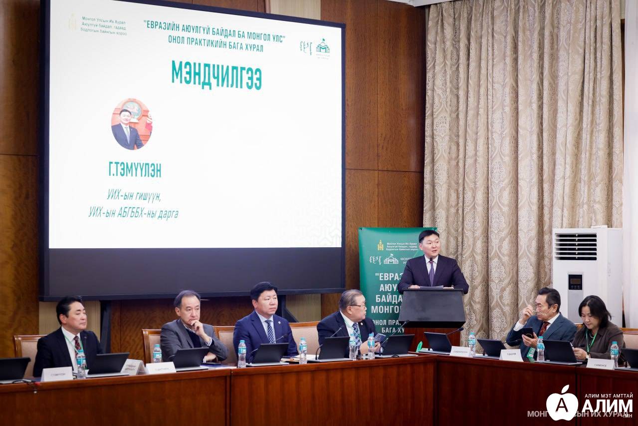 Улсын Их Хурлын Аюулгүй байдал, гадаад бодлогын байнгын хороо Монгол Улсын Их сургуультай хамтран “Евразийн аюулгүй байдал ба Монгол Улс” сэдэвт онол, практикийн бага хурлыг өнөөдөр /2026.12.05/ Төрийн ордонд зохион байгууллаа.
