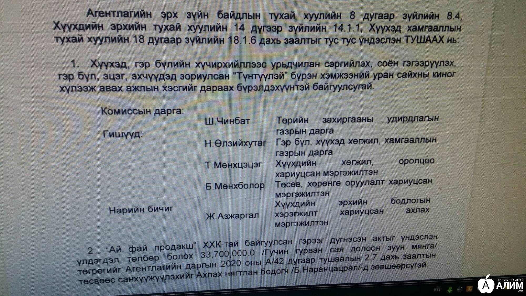 2019 оны намар Гэр бүл, хүүхэд залуучуудын хөгжлийн газар нь хүүхэд гэр бүлийн хүчирхийллээс урьдчилан сэргийлэх, соён гэгээрүүлэх чиглэлээр кино бүтээх тендерийг зарлахад “Ай фай продакшн”, “Цэлмэгмоушн” ХХК, “Айслинз” ХХК оролцжээ. Ингээд жүжигчин Б.Амарсайханы “Ай фай продакшн” шалгарч тэр оныхоо өвлийн сүүлээр 266 сая төгрөгийг төсвөөс авсан. Тэгвэл кино хийгдээд дуусчихсан аж. Энэ оны 8-р сарын 14-нд ГБХЗХГ нь “Түнтүүлэй” гэх уг киноны үлдэгдэл санхүүжилт болох 33,7 сая төгрөгийг “Ай фай продакшн”-д шилжүүлсэн байна. Агентлагийн дарга М.Энх-Амарын тушаалаар киног хүлээн авах ажлын хэсэг хүртэл байгуулагджээ. Ажлын хэсгийг Төрийн захиргааны удирдлагын газрын дарга Ш.Чинбат ахалсан. Тэрээр бодвол киног үзээд хүлээж авсан биз. Харин тушаалын хоёрдахь хэсгээр хүлээн авсан киног нийгэмд түгээхийг Гэр бүл, хүүхэд хөгжил хамгааллын газрын дарга Н.Өлзийхутагт даалгажээ. Гэсэн тэрээр киног олон нийтэд үзүүлэх үүргээ биелүүлээгүй, эсвэл жүжигчин Б.Амарсайхан бүх санхүүжилтээ авсан атлаа “Түнтүүлэй” гэж киног хийгээгүйгээс та бид тэрхүү гэр бүлийн хүчирхийллээс урьдчилан сэргийлдэг, соён гэгээрүүлдэг маш чухал киног одоо болтол үзээгүй л явна.