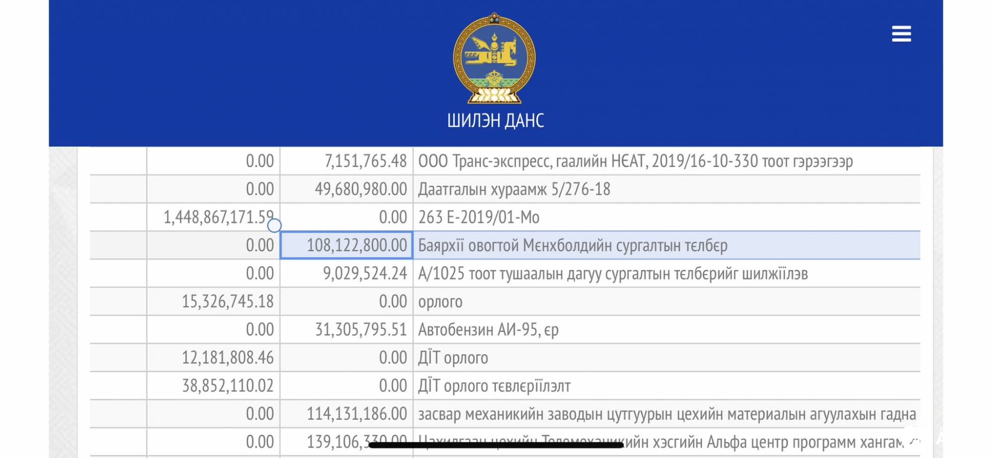 Төрийн өмчит энэ компани Бярхүү овогтой Мөнхболдын 108,1 сая төгрөгийн сургалтын төлбөрийг төлжээ. Монголд ийм үнэтэй их дээд сургууль байхгүй тул гадаад руу шилжигдсэн байх магадлалтайн дээр ерөнхий захирал Х.Бадамсүрэнгийн охины төлбөрөөс даруй зургаан саяар илүү байна. Ерөнхий захирлын охины сургалтын төлбөрийг ТӨБЗГ-тай байгуулсан гэрээний дагуу төлсөн болж цайрч байгаа. Тэгвэл энэ 108,1 саяын эрхмийн төлбөрийг ямар гэрээний дагуу төлсөн бол ... Тэрээр ОХУ-д сурдаг бололтой. Мөн үйлдвэрийн удирдлагын багийн дээд түвшинд багтах нэгэн байж магадгүй гэнэ.