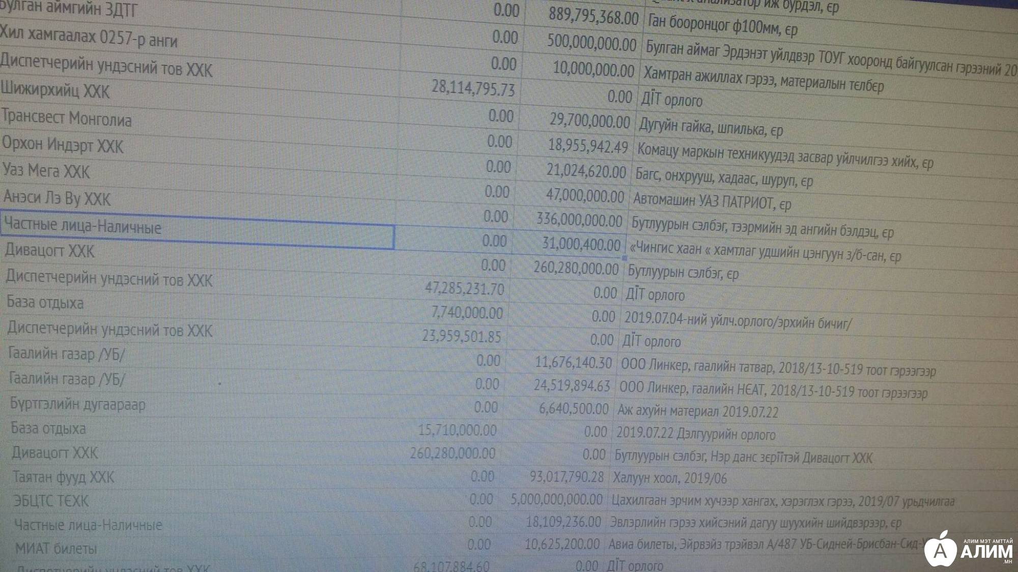 Ахиад л энэ үйлдвэр. Энэ удаад “Чингис хаан” хамтлаг оролцсон үдшийн цэнгүүнийг зохион байгуулахаар хувь хүн буюу “частные лица”-д “наличные” буюу бэлнээр 31 сая төгрөг гаргаж өгчээ. Тус бэлэн мөнгөний гүйлгээг 2019 оны 7-р сард хийжээ. Үйлдвэрийн ерөнхий захирал Х.Бадамсүрэнг 3-р сард нь Засгийн газрын хуралдаанаар улираан томилоод байсан.