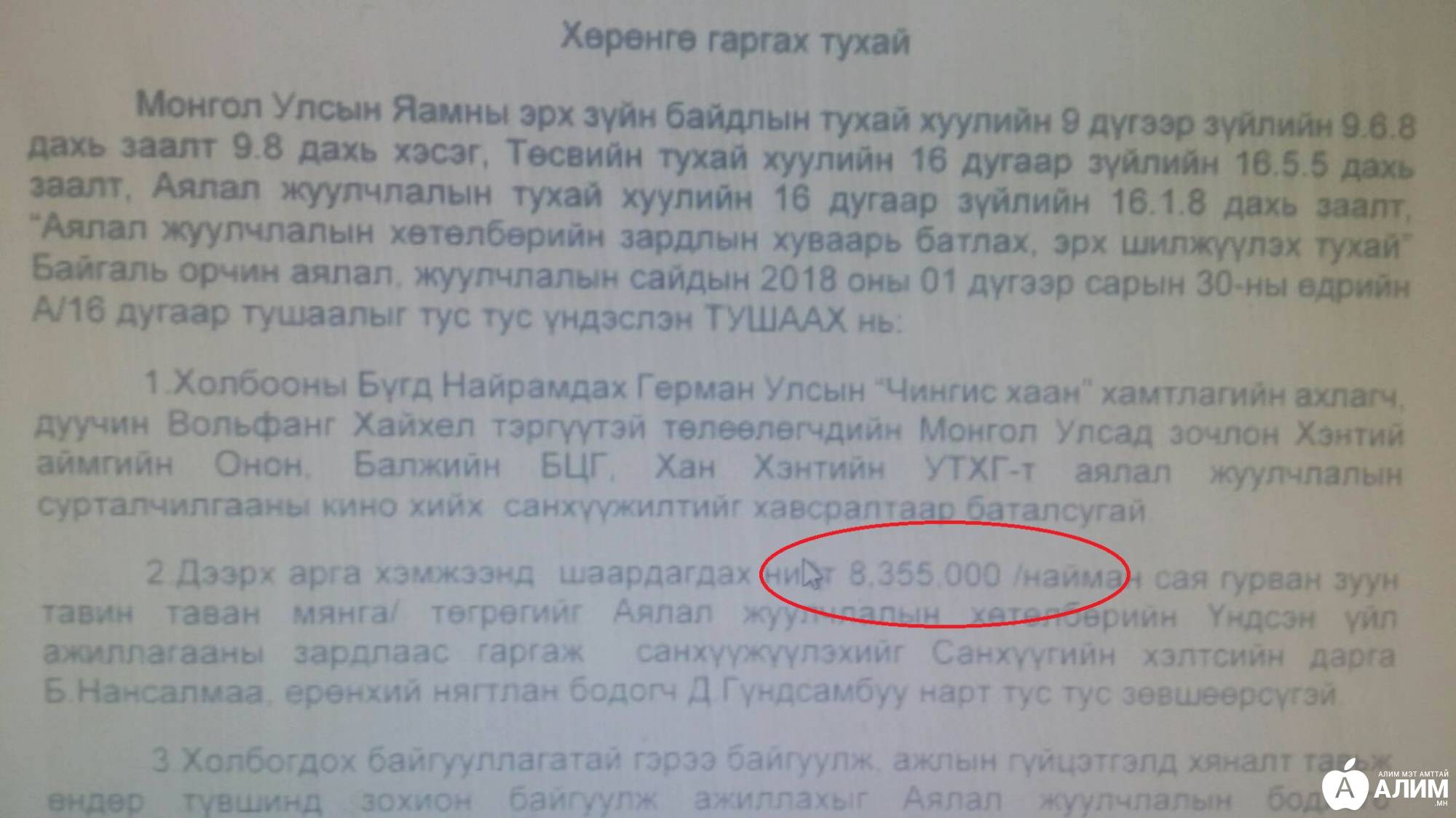“Херо”-гийн Баатарыг “бусдаар ажил гүйцэтгүүлэхдээ” сайн гэдэг. Хоёр жилийн өмнө БОАЖЯ-ны урьж ирүүлсэн Германы алдарт “Чингис хаан” хамтлагийн ахлагч Вольфганг Хейхэлийг “өөрийн” болгоод авсан. Герман дуучныг урих нь цэвэр яамны ажил байсан агаад бүх зардлыг мөн гаргасан нь шилэн дансны мэдээллээс нь харагдаж байна. Байр хоол, шатахууны зардлыг нь хүртэл гаргасан. Аялалын хөтөлбөрөөс харахад герман дуучин ирсэн өдрийнхаа өглөөний 05-11 цагийн хооронд л яамны зочин байжээ. 11 цаг 40 минутаас хойш “Херо” Баатар ахынхаа хамт “булаагаад” авчээ. Хөтөлбөрд зааснаар оройн хоолыг зөвхөн ах дүү хоёртой идсэн аж. Маргаашнаас нь “Херо” Баатар бүрэн өөрийн хүн болгоод төрөөр шатахуунаас эхлээд бүх зардлыг нь гаргуулан клип хийх газар луугаа авч явжээ.