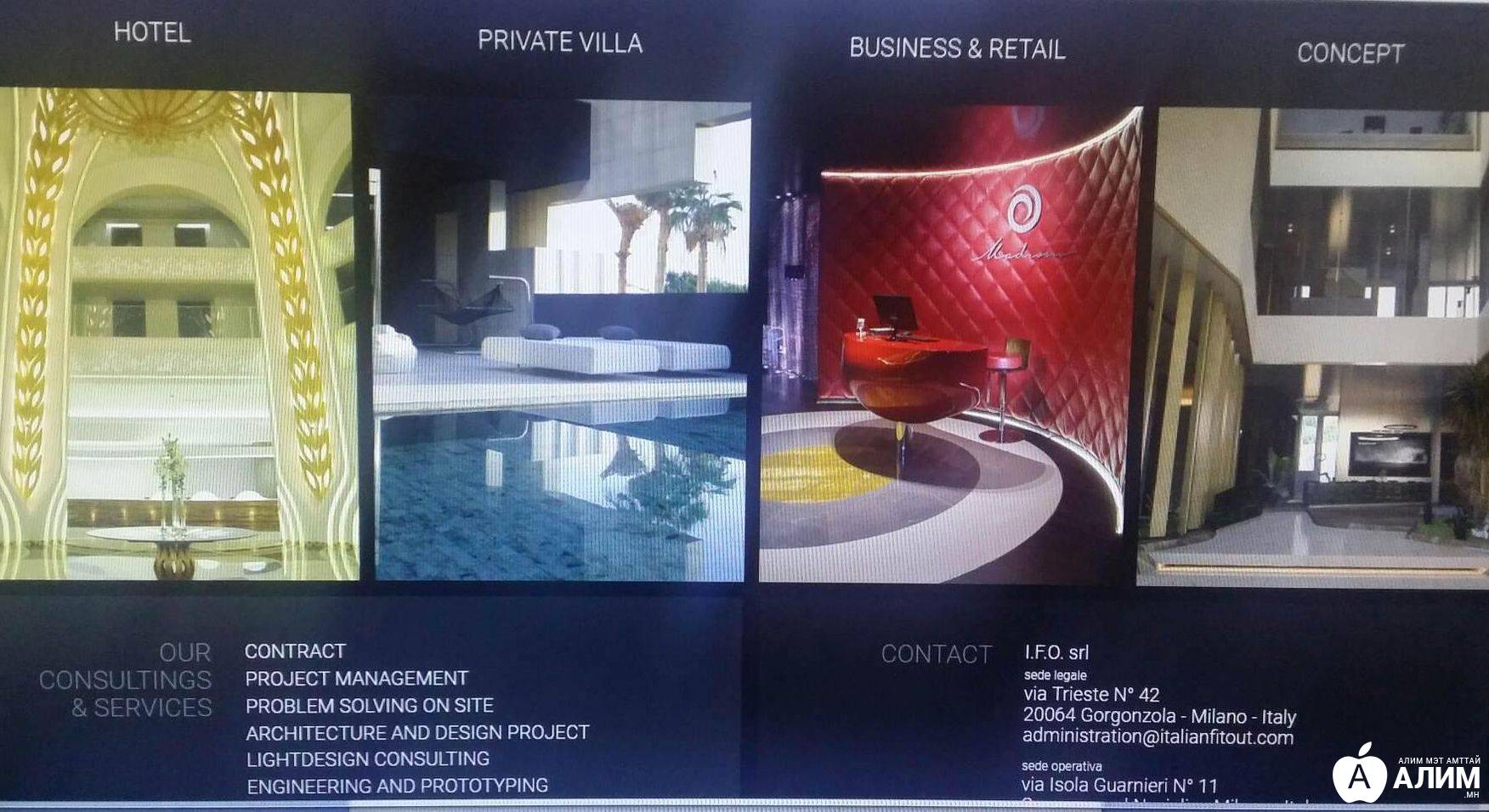 2019 оны 11-р сард 47,3 мянган евро буюу одоогийн ханшаар 160 сая төгрөгөөр Италийн MINOTTI LUIGI & BENIGNO брэндийн алтан ширээ, шүүгээ худалдан авсан байдаг. Тэгвэл энэ онын 5-р сард бас нэгэн итали компаниас үйлчилгээ авчээ. Энэ удаад үйлдвэрийн 40 жилийн ойн арга хэмжээний хүрээнд хийгдэх ажил хэмээн “Italian Fit Out I.F.O.S.R.L” компаниар офисын дотоод засал тохижилтын дизайныг гаргуулжээ. Үйлчилгээнд нь 27,7 сая төгрөг төлжээ. Уг итали компани вип зэрэглэлийн зочид буудал, зоогийн газар, хувийн орд харшны дизайн загвар, дотоод засал чимэглэлийн зураг төсөл, тохижилтыг хийдэг байна. Ийм компаниар өнөөх “удирдлагын баг” хэмээх дарга захирлуудын өрөө тасалгааны зураг дизайныг л гаргуулсан бололтой. Нэгэнт тансаг итали тавилга авсан тул түүндээ тохируулан итали дизайн хийлгэсэн биз. Ийнхүү энэ үйлдвэрийн захирлууд баруун Европын тансаг хэрэглээний загвар, хэмжүүрээр “ажиллаад” эхэлжээ.