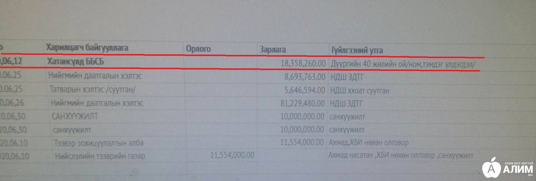 ББСБ ойн тэмдэг, ном хийдэг болсон хачирхалтай тохиолдол Багануур дүүргийн ЗДТГ-ын шилэн дансны мэдээллээс гарлаа. Энэ зун аз жаргалтай дүүрэг 40 жилийн ойгоо тэмдэглэсэн. Дүүргийн ойд зориулан мэдээж дурсгалын тэмдэг, ном хийлгэсэн агаад төлбөрийг нь “Хатансүлд” гэдэг ББСБ-д шилжүүлжээ Эхний гүйлгээгээр 12,8 сая, дараагийн гүйлгээгээр 18,3 сая төгрөг нийтдээ нийтдээ 30 гаруй сая төгрөгийг тэмдэг, номонд зарцуулаад дууссан байна.