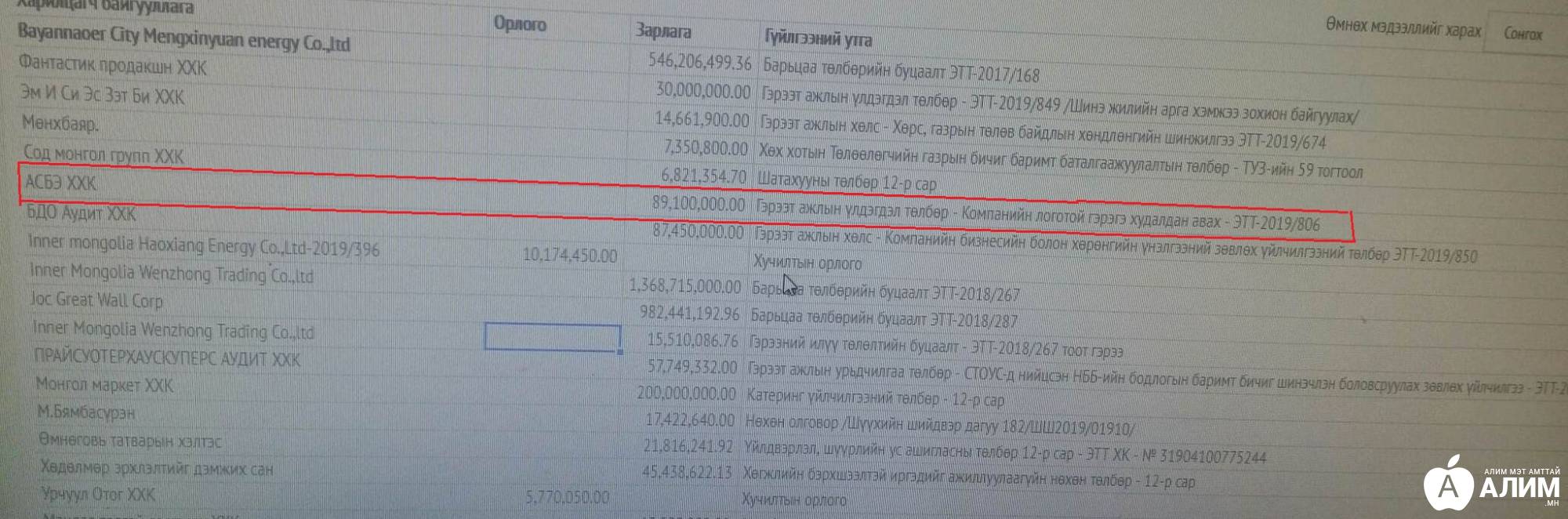 Хэрвээ урьдчилгаанд нь 10-20 сая төгрөгийг өгсөн гэж тооцвол бэлэг дурсгал, гоёлын зориулалтаар захиалан хийлгэдэг энэхүү гэрэгэд бараг 100 саяыг зарцуулсан гэх тооцоо гарч байна. Лого хийсэн “АСБЭ” компани нь 1999 оноос хойш принтер, хулдаас, стикерийн төрөл бүрийн хэвлэлт, мод, металл, аяга, даавуун дээрх хэвлэх, өргөмжлөл, цом, нэрийн хуудас, плакат, прошур, лазер сийлэлт, огтлолт, CNC сийлбэр, сийлбэртэй модон эдлэл, жааз, лого, сүлд, гүнгэрваа, цацалын халбага, бэлэг дурсгал зэрэг бүтээгдэхүүн хийдэг аж. Ийнхүү “ЭТТ” их хэмжээний мөнгөөр захирлынхаа өрөөг чимэглэх гэрэгэтэй болжээ. Энэ компани тансаг ангилалын ажил, үйлчилгээ авч мөнгөтэй хүн шиг загнадаг нь 39,5 саяар компанийн сүлд дуу хийлгэсэн, 30+? сая төгрөгөөр шинэ жилдсэн зэргээс харагддаг. Ингэхдээ зөвхөн урлагын томчууд буюу “Харанга”-ын Чука, “Фантастик продакшин” зэрэгтэй л харьцдаг. Энэ нь компанийн гүйцэтгэх захирлын хувийн зан чанартай холбоотой байж магадгүй.