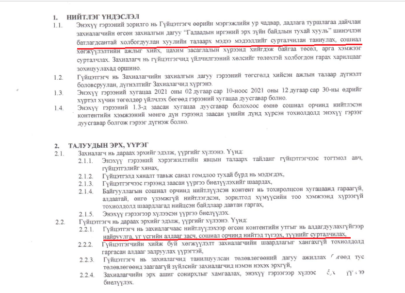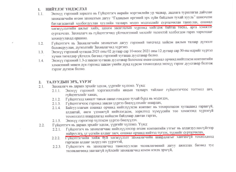 Энэ оны ТББ-д хамгийн “ээлтэй” төсөв захирагчаар Гадаадын иргэн харьяатын газрын дарга Х.Ууганбаяр шалгарах нь бараг тодорхой болжээ. Тэрээр доорхи нэр бүхий долоон ТББ-тай нийт хагас зуун сая гаруй төгрөгийн гэрээ байгуулсан байна. Газрын даргатан цахим хөгжүүлэгч залуусаар шинэчлэн батлагдсан “Гадаадын иргэний эрхзүйн байдлын тухай хууль”-иа цахим орчинд сурталчлан таниулах “хүнд” бөгөөд “бэрх” ажлыг хийлгэх гэнэ. Хийлгээд ч эхэлсэн байна. Газрынхан контентаа өөрсдөө бэлдэж өгөх аж. Төрийн албаныхан тул үг үсгийн алдаа гаргах өндөр магадлалтай учир ТББ-ынхан засаад цахим орчинд тарааж байгаа бололтой. Гэрээ байгуулахдаа ажилтнуудынхаа чадварын түвшинг “харгалзаж” үзээд алдааг нь бусдаар засуулахаар заалт оруулсан байна. Хуулийн сурталчилгаанд хагас зуун сая төгрөгийн хөлстэй долоогийн долоон байгууллага ажиллаж байгаа атал цахим орчинд мэдэгдсэн зүйл төдий л алга. Хамгийн сүүлд харагдсан мэдээллээр газрын даргатан орж ирсэн гадаадын ажилчдыг хянаж чадахгүй байгаагаа учирлаж зовлон тоочсон. Уг нь хуулийн сурталчилгаанаас илүүтэйгээр хяналт чухал баймаар. Гэхдээ төсвийн хөрөнгөнийхөө ихээхэн хэсгээр ТББ-уудыг “угжиж” буй тул цаана нь хяналт, шалгалтанд тавигдах зардал төдий хэмжээгээр багассан биз...