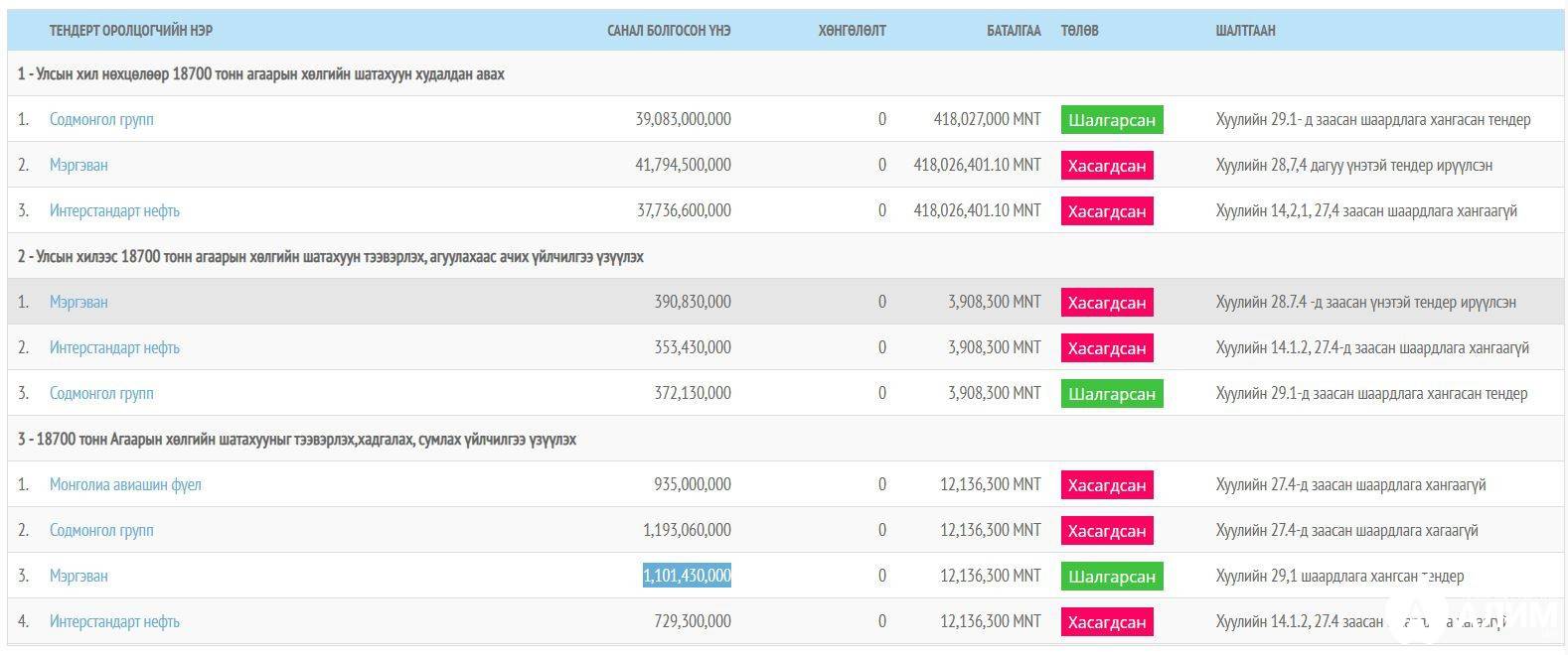 Ц.Анандбазарын “Сод монгол групп”, “Мэргэван” хоёр тендерт хамт орсон бол нэг нь заавал ялдаг