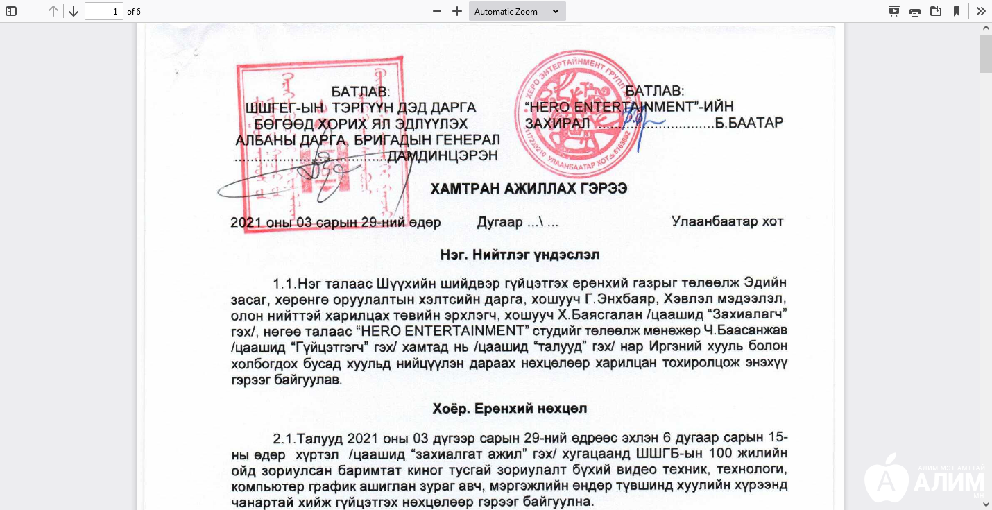 Ерөнхий сайд Л.Оюун-Эрдэнийн хувь эзэмшдэг “Херо энтертаймэнт” студи 100 жилийн ойн баяр наадмыг тэрбум гаруй төгрөгөөр зохион байгуулсанаас хойш төрсөн ах б.Баатар нь “төрийн уран бүтээлч” –ээр өргөмжлөгдөх нь бараг л тодорхой болсон. Тэр тусмаа 100 жилийн ойд зориулагдсан бүх киног хийх нь ... “Түүхт” ойг сүржин тэмдэглэх нь төрийн байгууллагуудын нэг том ажил болоод байна. Ойдоо зориулж баримтат кино, дуу, клип, ном гаргах нь ойг тэмдэглэх арга хэмжээний хүрээнд заавал хийгдэх боллоо. Тэр тусмаа 100 жилийн ойг бол бүр ч өргөн дэлгэр, нижгэр тэмдэглэх ёстой. Чухал ойн киног захын нэгэн киночинд даалгаж болохгүй тул Д.Загджав даргатай ШШГЕГ бүр өнгөрсөн хавар Ерөнхий сайдын ахын студитэй гэрээ байгуулжээ. 100 жилийн ойн киноны өртөг нь 60 сая төгрөг гэнэ. Тэрбумээр наадам хийдэг Б.Баатарын хувьд энэ нь багахан мөнгө биз. Гэхдээ 100 жилээ тэмдэглэгчдийн буянаар студи нь ажлаар тасрахгүй явж байна. Ажил их тусмаа ашиг орлого нэмэгдэж, хувь эзэмшигчидийн халаас түнтийх нь мэдээж. ШШГЕГ-ын удирдлагууд “Херо энтертайнмэнт”-тэй гэрээлсэнээр нэгэн төрлийн жишиг тогтоосон гэхэд болно. Өдгөө 80-100 жилийн ойн баримтат киногоо хийлгэх төрийн байгууллагууд Ерөнхий сайдын ах руу утас цохиж буй биз ...
