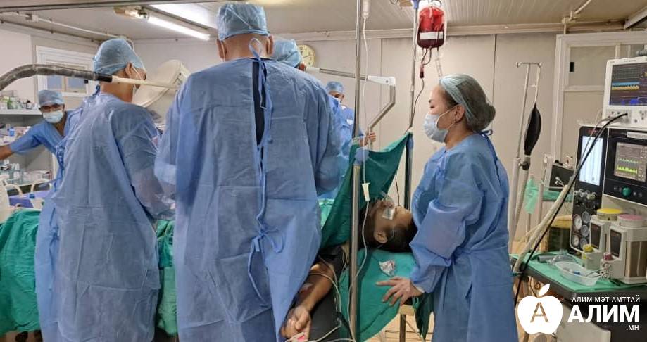 Өвчтөний дэлүү бүтэн задарч, идэвхтэй цус алдалт явагдаж байсан тул дэлүү авах, тайрах мэс заслыг өндөр түвшинд яаралтай хийж, 4 литр цус сэлбэснээр үхлийн аюулыг зайлуулж чадсан байна.