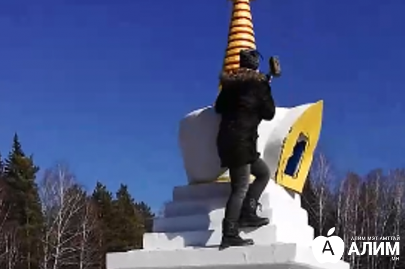 Үнэн алдартны шажинт орос эмэгтэй Буддын суваргыг лантуугаар цохиж эвдэлжээ