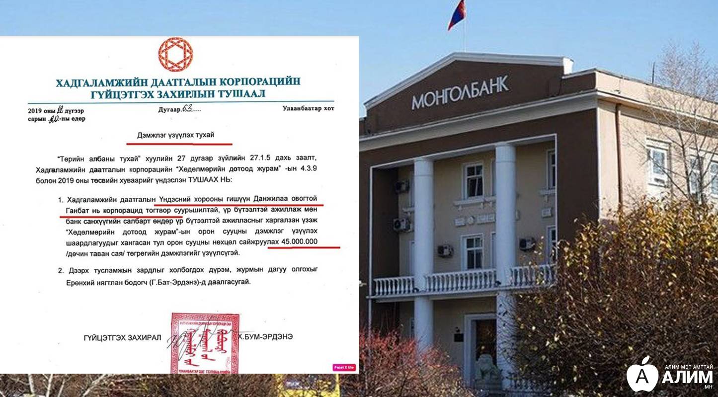 Ийм их эд хөрөнгөтэй түүнийг 2019 оны 12-р сарын 20-ны өдөр Хадгаламжийн даатгалын корпорацийн захирлын тушаалаар 45 сая төгрөгийн орон сууцны дэмжлэг үзүүлэхээр болжээ. Ингэхдээ Төрийн албан тухай хуулийн 27-р зүйлийн 27.1.5 дахь заалтыг үндэслэсэн байна.